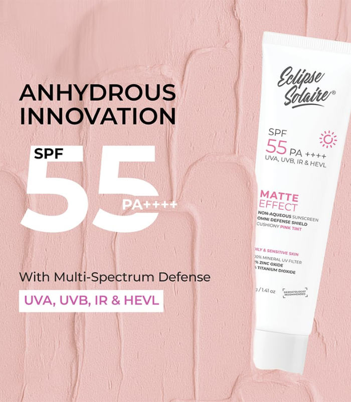 Eclipse Solaire Matte Effect Physical SPF 55 PA++++, No White Cast, for Acne Prone, Oily & Sensitive Skin | 40g